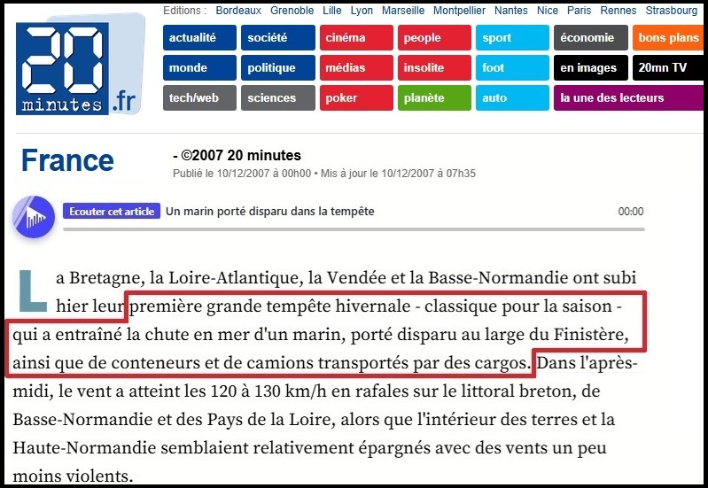 Encore trois semaines plus tard : on m'annonce que la voiture sera sur un bateau qui doit partir le 12 Décembre. Avec le nom du cargo, je me mets à suivre (très) régulièrement sa position sur la carte... et voici le genre d'actualités en cette période :